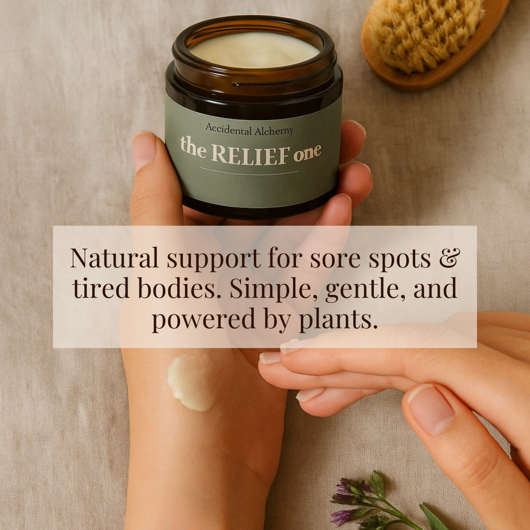 The Relief One by Accidental Alchemy is a natural, fast-acting balm designed to support an active lifestyle. Formulated with a blend of natural ingredients, including arnica, magnesium, comfrey and black pepper to complement your wellness routine.